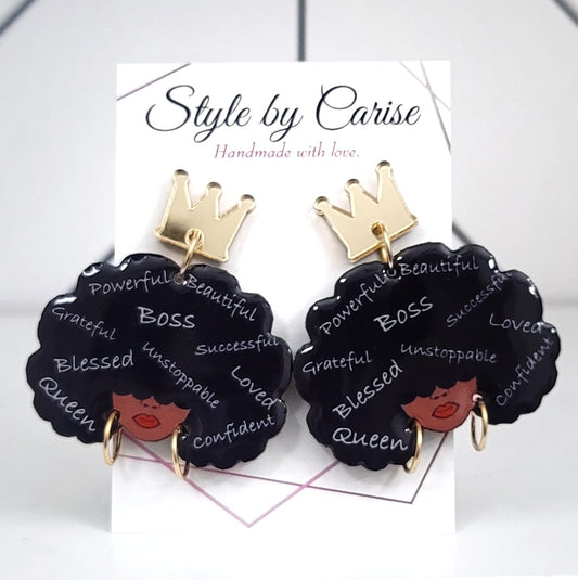 Affirmation Queen Earrings lil' sis! (1 inch stud earrings)
