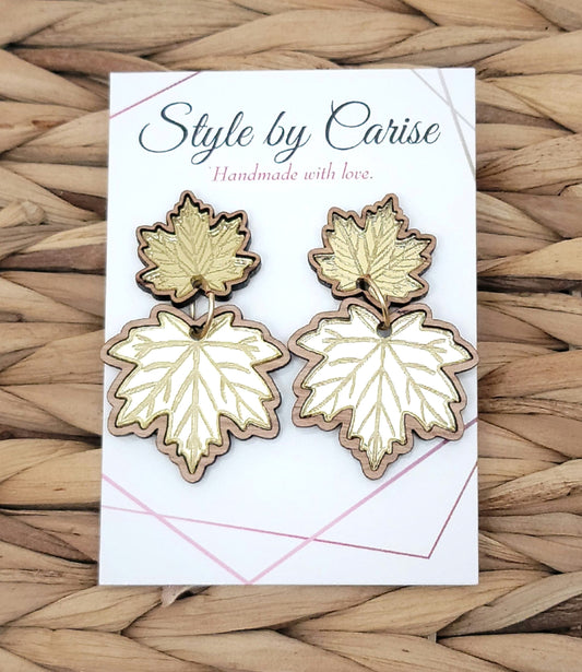 Golden leaves with Cherrywood trim earrings
