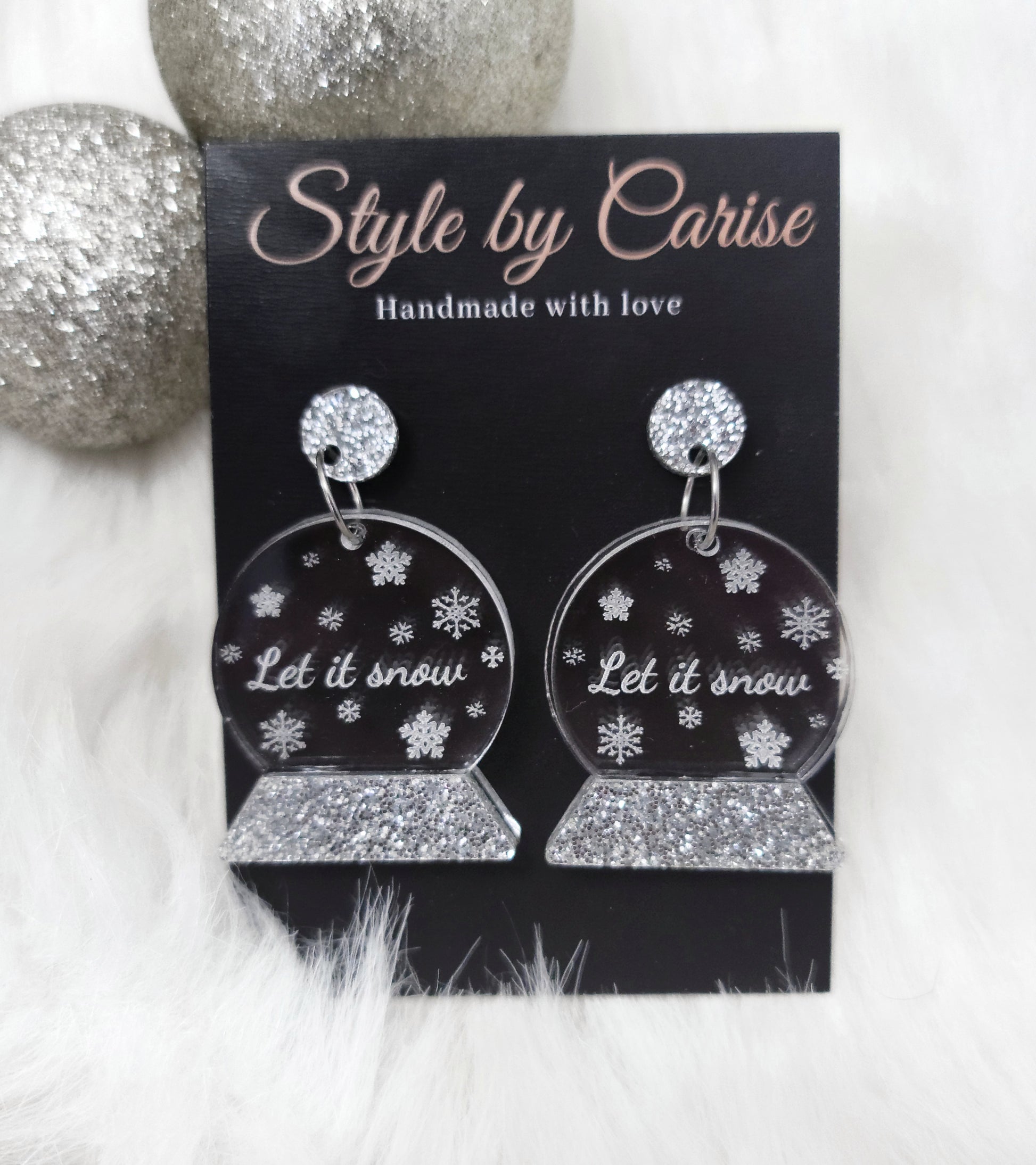 Celebrate the season with these charming laser-cut and engraved snowglobe earrings, featuring "Let It Snow" engraved on the front. Perfect for holiday parties or as a thoughtful gift, these festive earrings bring a touch of winter magic to any outfit. Crafted with durable stainless steel posts for comfortable, everyday wear. A fun way to show your holiday spirit.